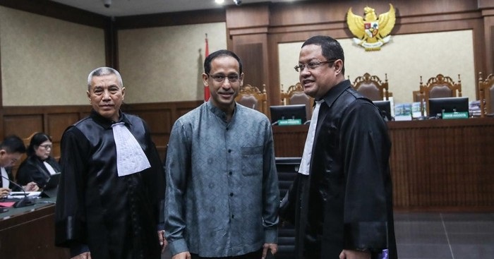 Setelah majelis hakim mengetuk palu tanda skors, Nadiem langsung dibawa keluar ruang sidang.